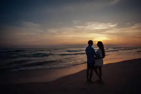 一对看海的情侣