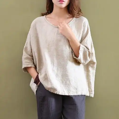 秋季文艺大码长袖亚麻上衣