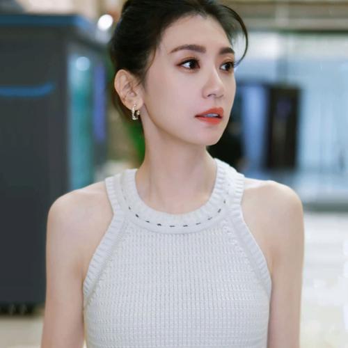 夏天穿的短款背心各有不同,有吊带的也有宽肩带的,贾静雯的这款背心为