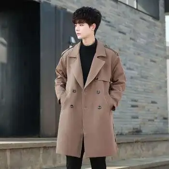 bm男士黑色复古翻领外套垂感风衣男中长款英伦风韩版潮流修身百搭