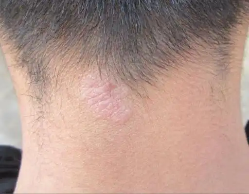 孩子三岁多,脖子后面有图片的样子,最开始就像皮肤烂了一样,之后变成