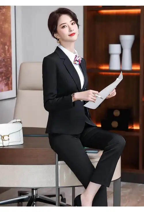 长袖西服套裙职业女装两件套小香风气质西装经理老板教师工作服潮