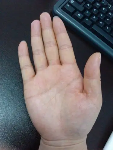 手指,手掌,大拇指上,起先里面密密麻麻起小水泡,又很痒,脱皮,还干燥裂
