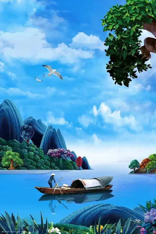 蓝天大海中国风山水源文件h5背景