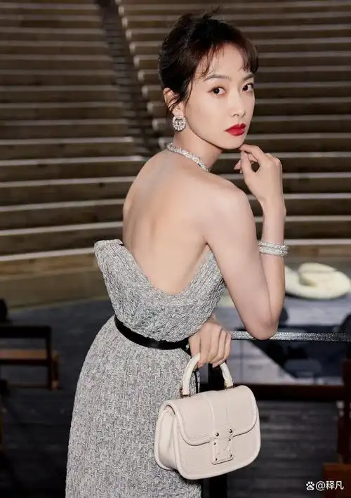 宋茜黑色抹胸裙造型,独特星河散碎设计,熠熠生辉尽显高贵气质