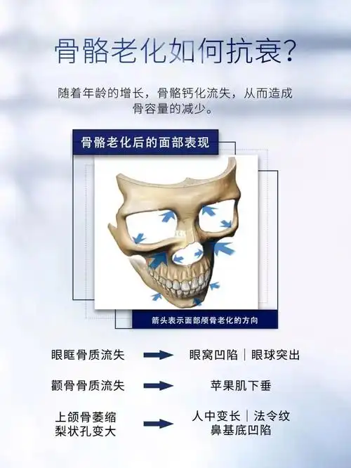 面部骨骼能给面部软组织和五官提供支撑力,在衰老过程中,骨骼会选择性