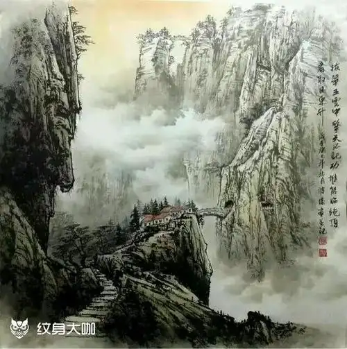 山水画_纹身图案手稿图片_刺客部落小燕的纹身作品集