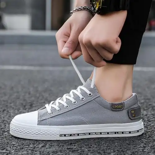 帆布鞋男韩版潮流鞋子春季新款板鞋低帮透气百搭鞋男士系带休闲鞋闪潮