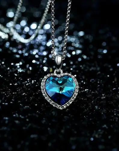 批发泰坦尼克号海洋之心蓝心爱永远吊坠项链 天鹅绒包
