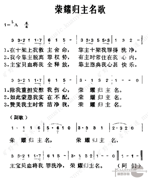 第75首 - 荣耀归主名_简谱_乐谱吧
