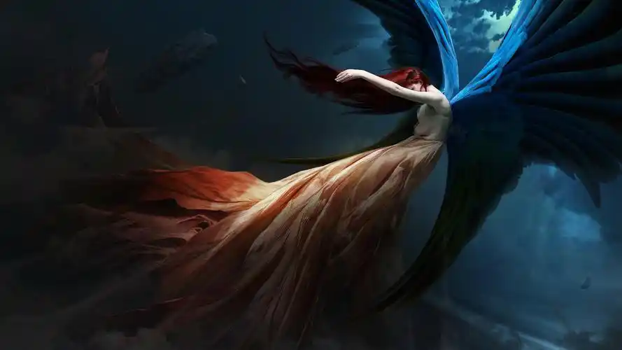 天使女孩堕落的翅膀-幻想设计高清壁纸