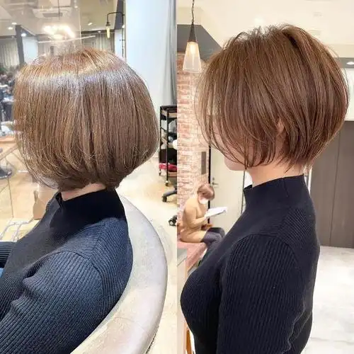 一刀切的波波头简单又时尚,搭配纹理卷烫发,有效地增加了整个发型的