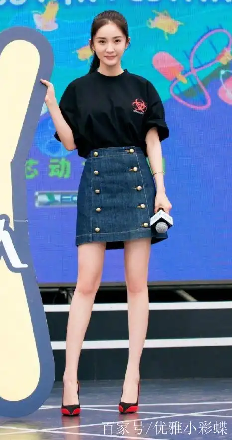 杨幂用体恤搭牛仔裙,"打破"了常规的搭配,效果很不错_时尚_感觉_休闲