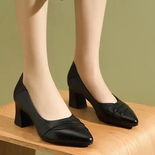 羊皮单鞋女软皮简约浅口细跟女鞋春秋职业休闲一脚蹬懒人高跟鞋女