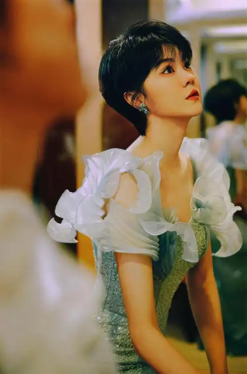 郁可唯的美貌被低估,穿抹胸黑裙秀"筷子腿",狗啃短发又酷又美_黑色_的