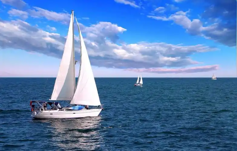 蓝天白云,大海帆船