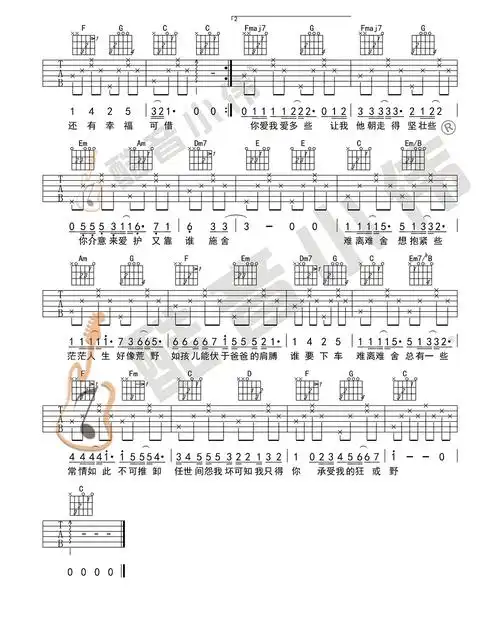 1大伟g调版 陈奕迅《单车》吉他弹唱六线谱