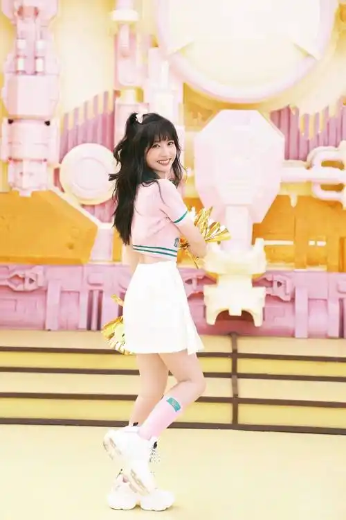 赖美云甜心学妹米色针织衫黄色云朵裤俏皮灵动奶油腿太可爱