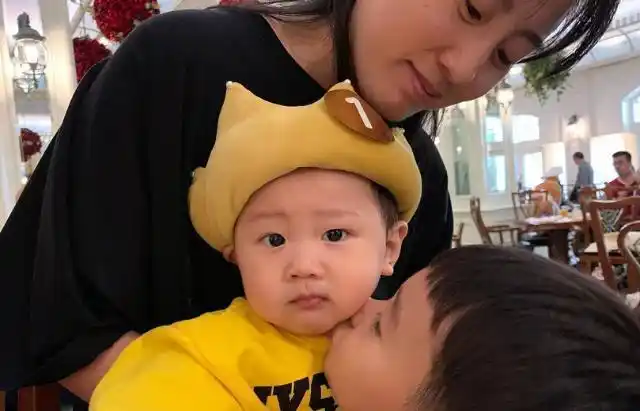 李英爱与双胞胎儿女亲密合影