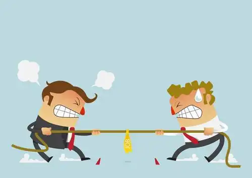 穿红毛衣的卡通人物用拳头攻击穿灰衬衫的人.