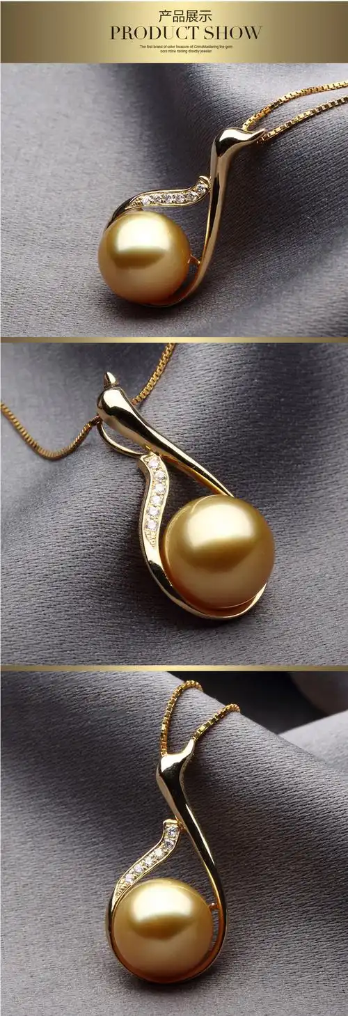 麦典11-12mm正圆强光南洋金珍珠吊坠 18k金托钻石镶嵌 送银链——麦典