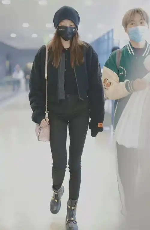 关晓彤穿黑色短款针织西装搭配紧身牛仔裤,又美又飒尽显好身材