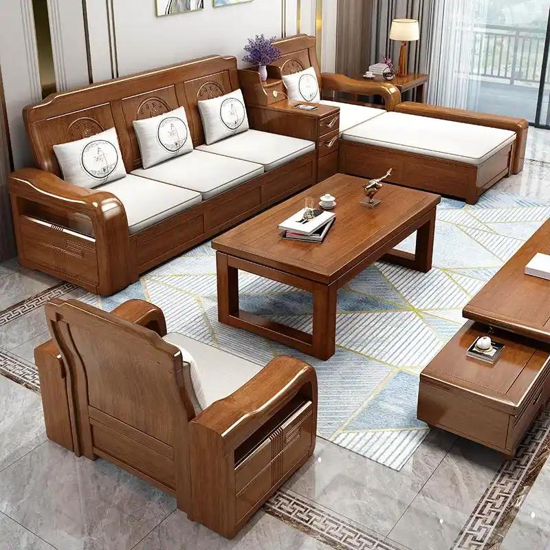 实木沙发组合新中式客厅胡桃木家具全套冬夏两用储物沙发3人位贵妃榻