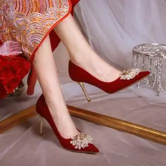 红色婚鞋 |平价百元 仙女小跟低跟婚鞋.适合高个子的新娘,不 - 抖音