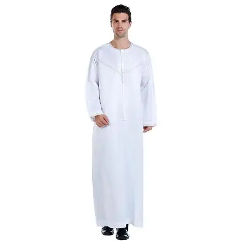 中东迪拜长袍沙特阿拉伯服装夏季男士长衫旅游民族学生表演服白色v领