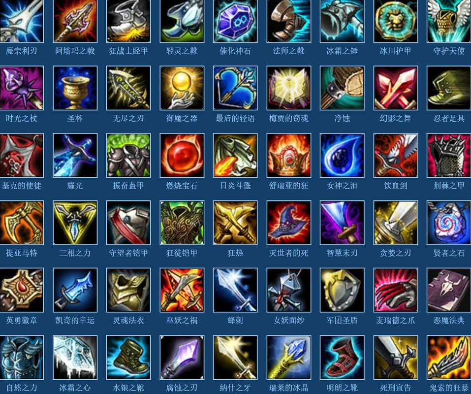 当英雄联盟装备图标放大后,你能说出几个装备的名字?