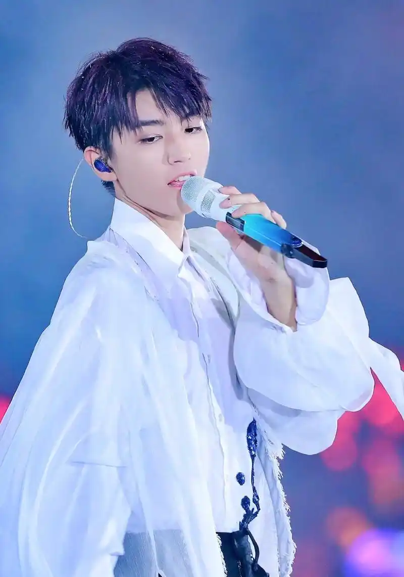 蓝色渐变真的好致命 话筒是王俊凯的专属浪漫