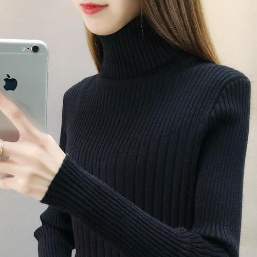 韩版新款纯色麻花加厚高领毛衣女中学生宽松套头打底针织衫潮 黑色 xl