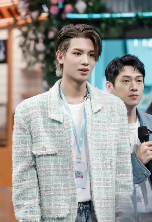 黄明昊最新综艺造型已上线,身穿白色t恤,搭配浅绿色外套