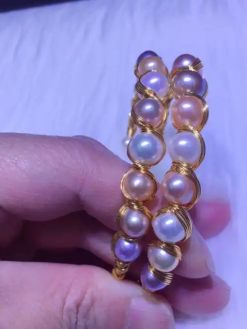 彩色18k金珍珠手镯