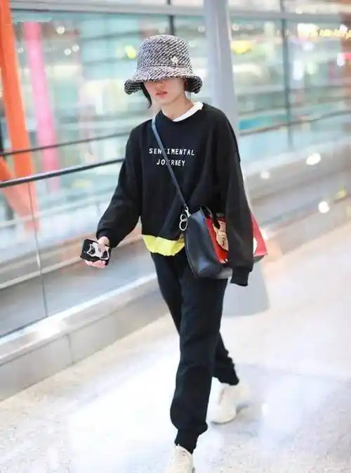 张子枫年后机场首秀中性风穿搭自成一派戴盆帽气质好乖巧