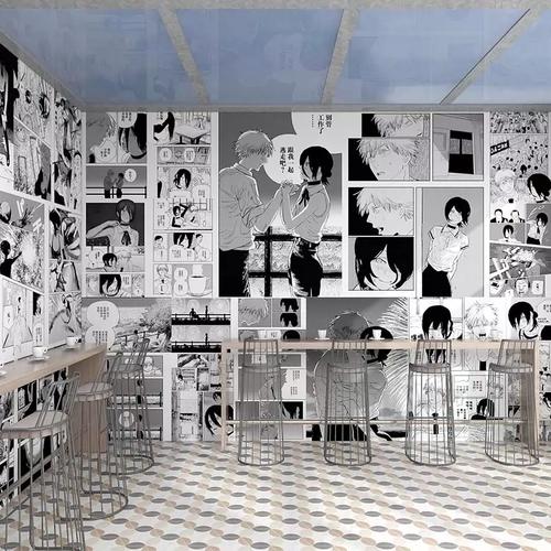 3d立体动漫墙纸火影忍者海贼王黑白漫画壁纸男卧室网吧日式餐厅
