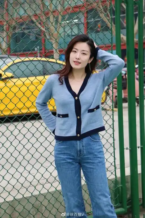 原创奔四的徐百慧温柔又自信蓝色衬衫拼接流苏看起来温婉还挺知性