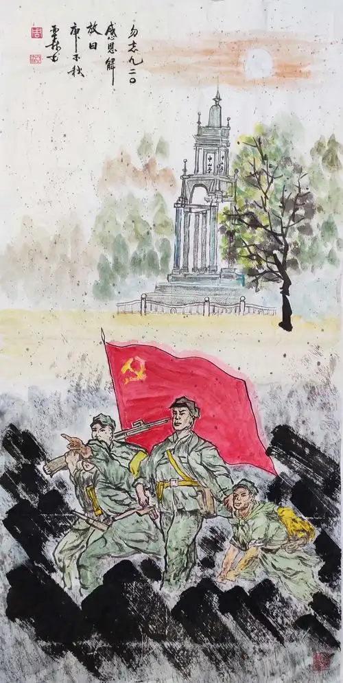 我画的国画:长城长 祖国旺 幸福长