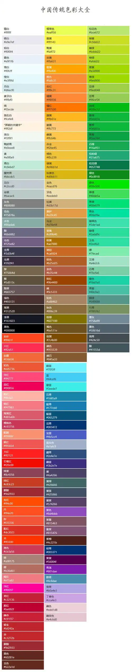 中文颜色名称颜色对照表