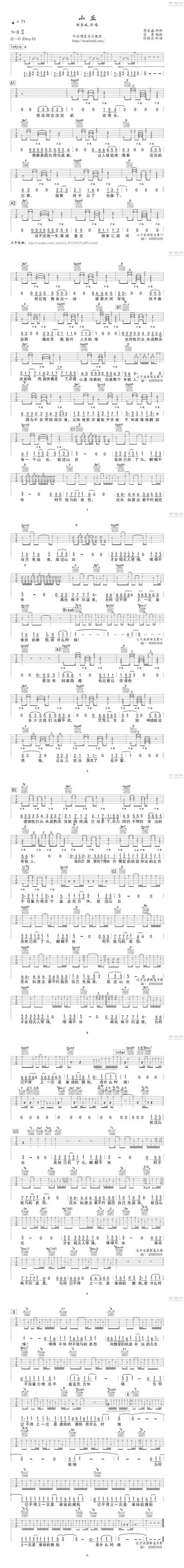 山丘吉他谱图片格式六线谱-明明简谱网