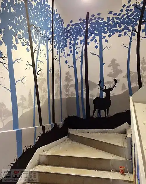 是点缀家装的重要环节 不一定非得在楼梯的墙上挂画 画上墙绘,是不是