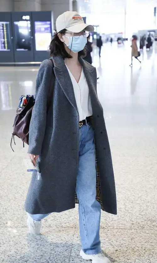 戚薇休闲私服机场街拍照图片_明星_美桌图片库
