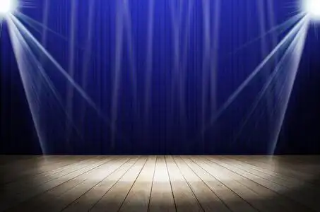 在舞台上的红布幕剧院舞台蓝幕舞台背景舞台幕布金色舞台上红色的布幕