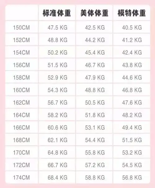 女生标准体重表来了!请150-180cm的mm对号入座