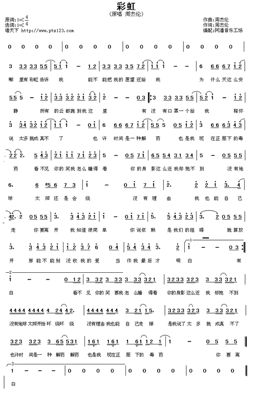 彩虹(周杰伦词曲)_简谱_搜谱网
