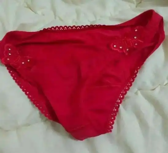 红色的胸罩的两侧都出现了白色的斑点,一条粉红色的内裤底部,也是