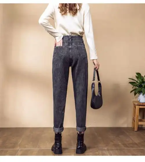 现货2021秋冬显瘦小脚牛仔裤女紧身弹力百搭松紧高腰裤女装潮,女装