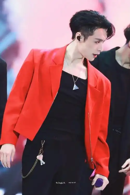张艺兴酒红色西装