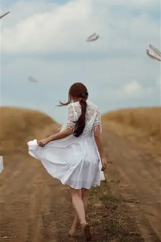 白色纱裙美女背影图片