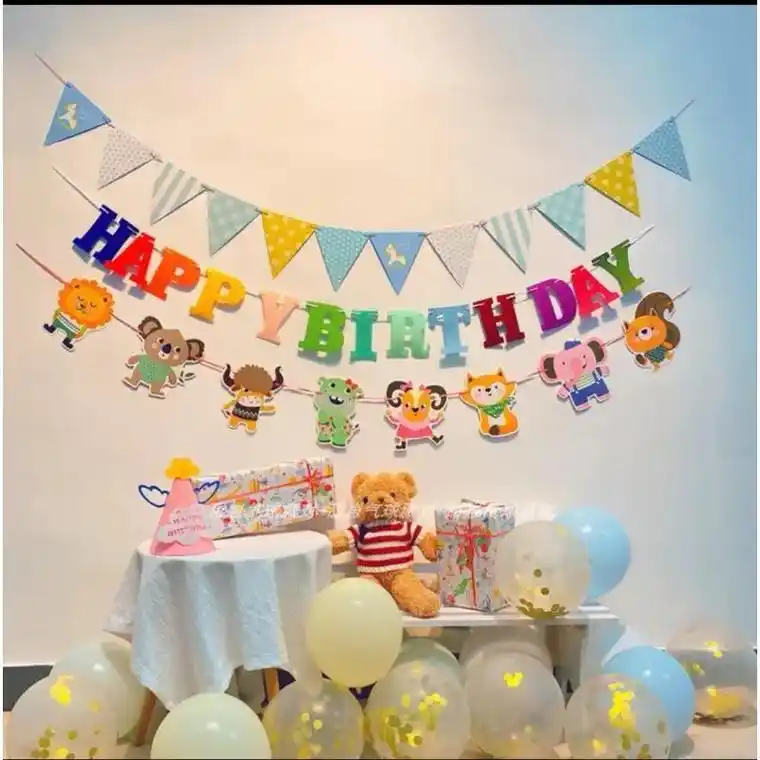 开心生日派对生日插画卡通风格小伙伴庆生室内